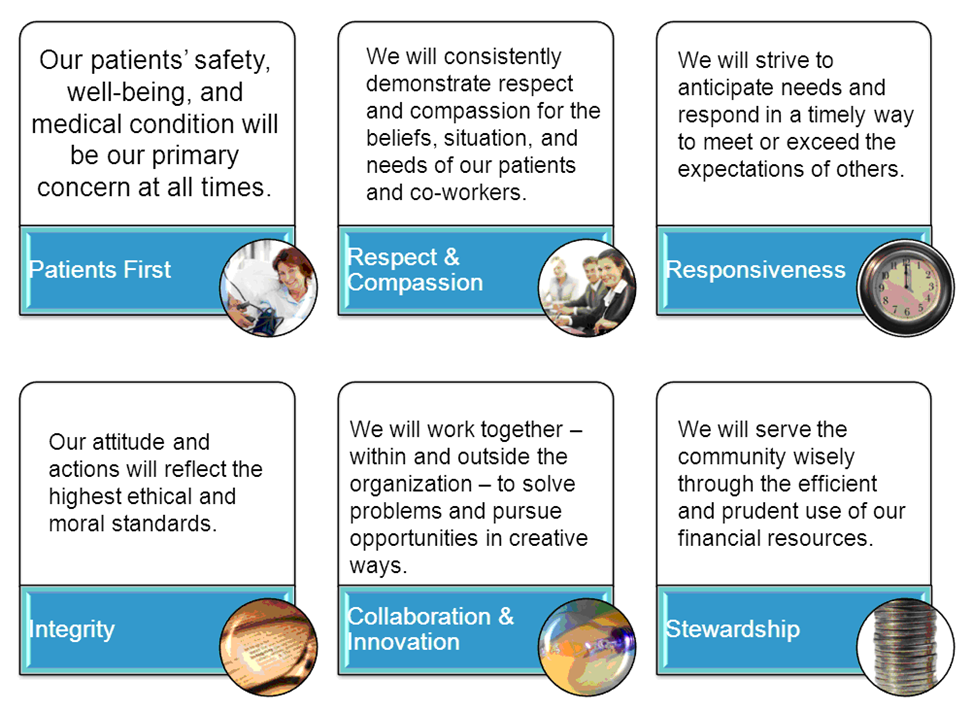 We provide high-quality healthcare without discrimination, and contribute to the health and well-being of our communities in an ethical, safe, and fiscally prudent manner in recognition of our charitable purpose.